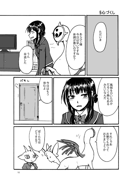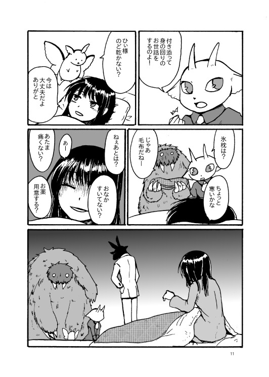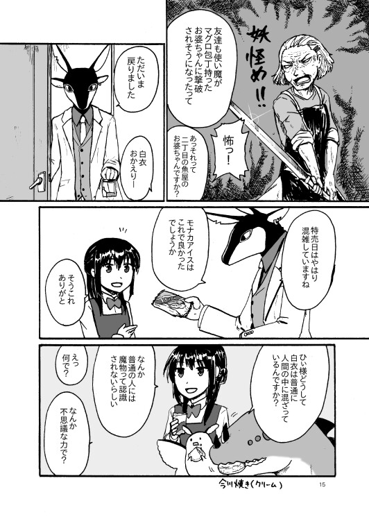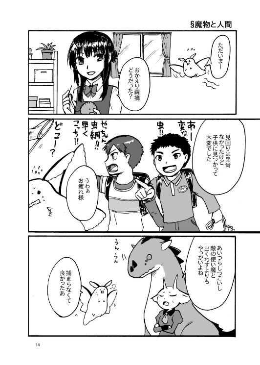 2015/04/21 Category : 未選択 COMITIA112新刊 「括糸斐結の眷属」 B5 32ページ 300円 キキナシと同じ世界ですが別シリーズです。主人公は魔術師ですがほぼ戦闘シーンはなくて使い魔とまったり生活してるような漫画です。 1話2ページのショートショート。 以下サンプルです。 メインキャラが人外ばかり(´・ω・`) [0回]